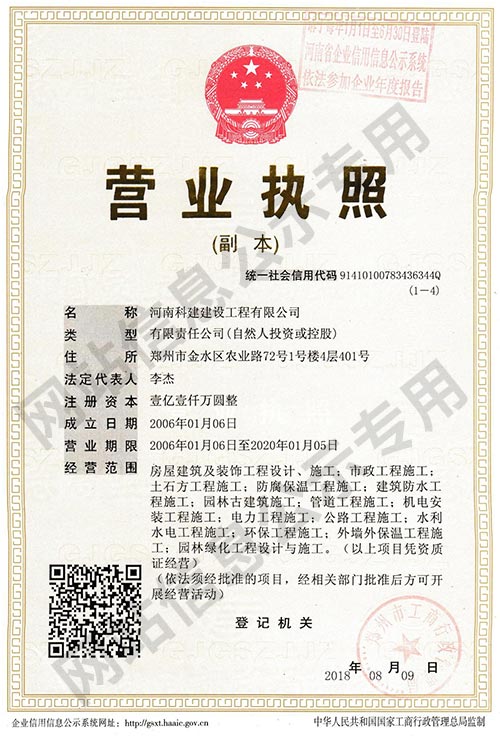 河南科建建設(shè)工程有限公司是一家以房屋建筑、建筑裝飾、建材貿(mào)易及大型建筑機(jī)械設(shè)備租賃為主營(yíng)業(yè)務(wù)的成長(zhǎng)型企業(yè)。擁有建筑工程總承包壹級(jí)資質(zhì),裝飾裝修、防水防腐保溫等專(zhuān)業(yè)承包壹級(jí)資質(zhì),注冊(cè)資本1.1億元。